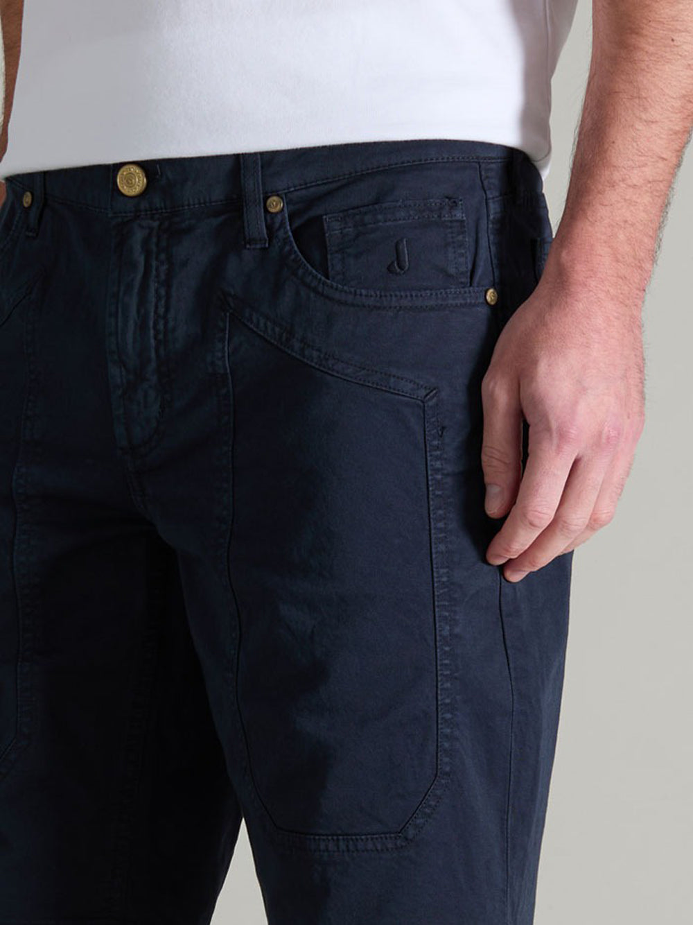 I Bermuda Casual Jayden di Jeckerson offrono uno stile versatile e contemporaneo adatto all'uomo moderno. Questi bermuda sono realizzati in una gabardina blu scuro, garantendo un look elegante e confortevole. Con il loro design a 5 tasche e la toppa caratteristica, si adattano perfettamente ai momenti di relax o agli eventi informali.