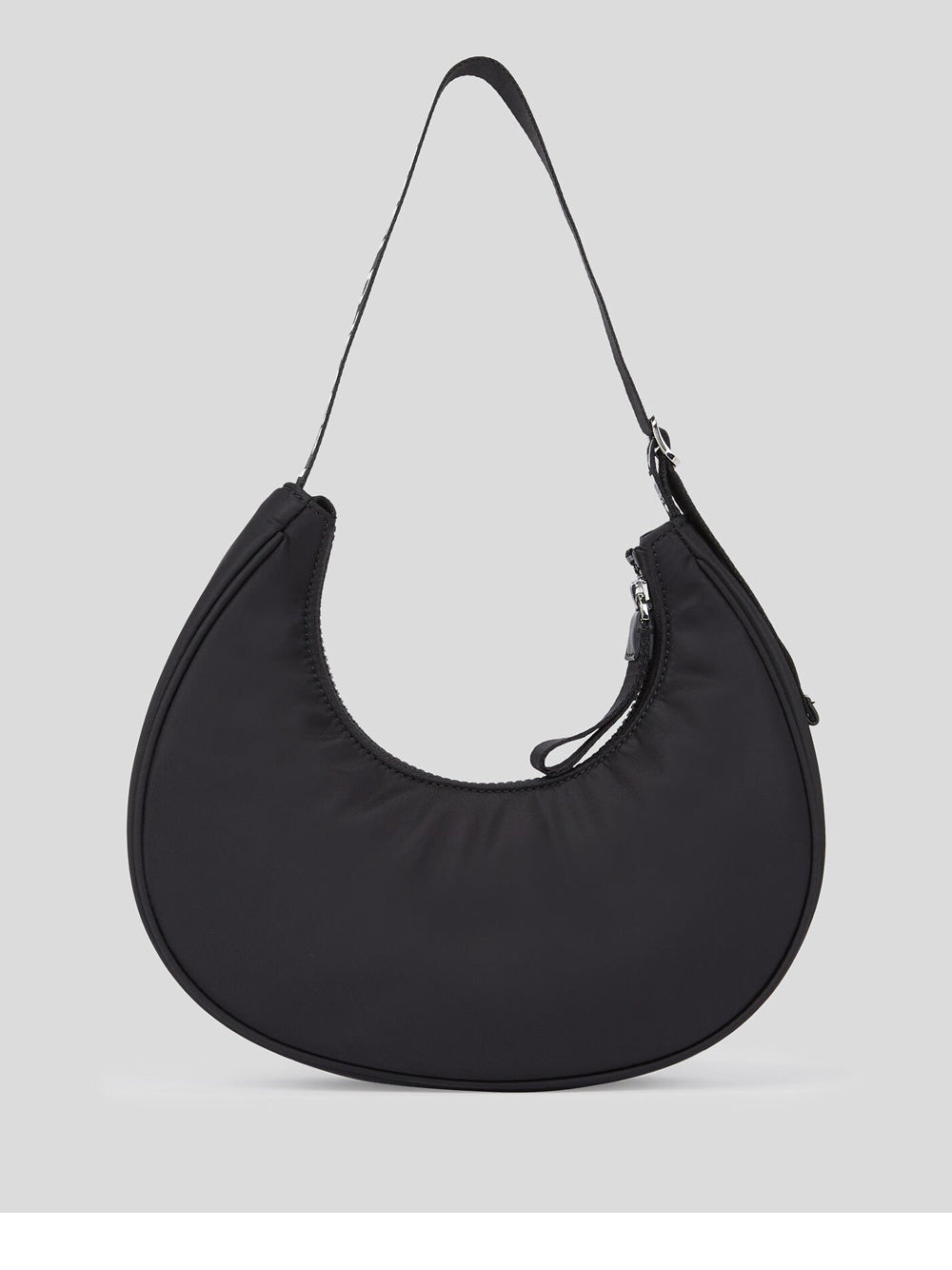 La borsa a mano "Borsa a Mano Donna A1W30231 Black - Nero" firmata Karl Lagerfeld è l'ideale per chi cerca un accessorio elegante e funzionale. Realizzata in nylon essenziale e caratterizzata da una forma a mezza luna, questa borsa è perfetta per aggiungere un tocco di stile ai tuoi look da party. Il suo design ricercato e la sua praticità la rendono una scelta vincente per la donna moderna.