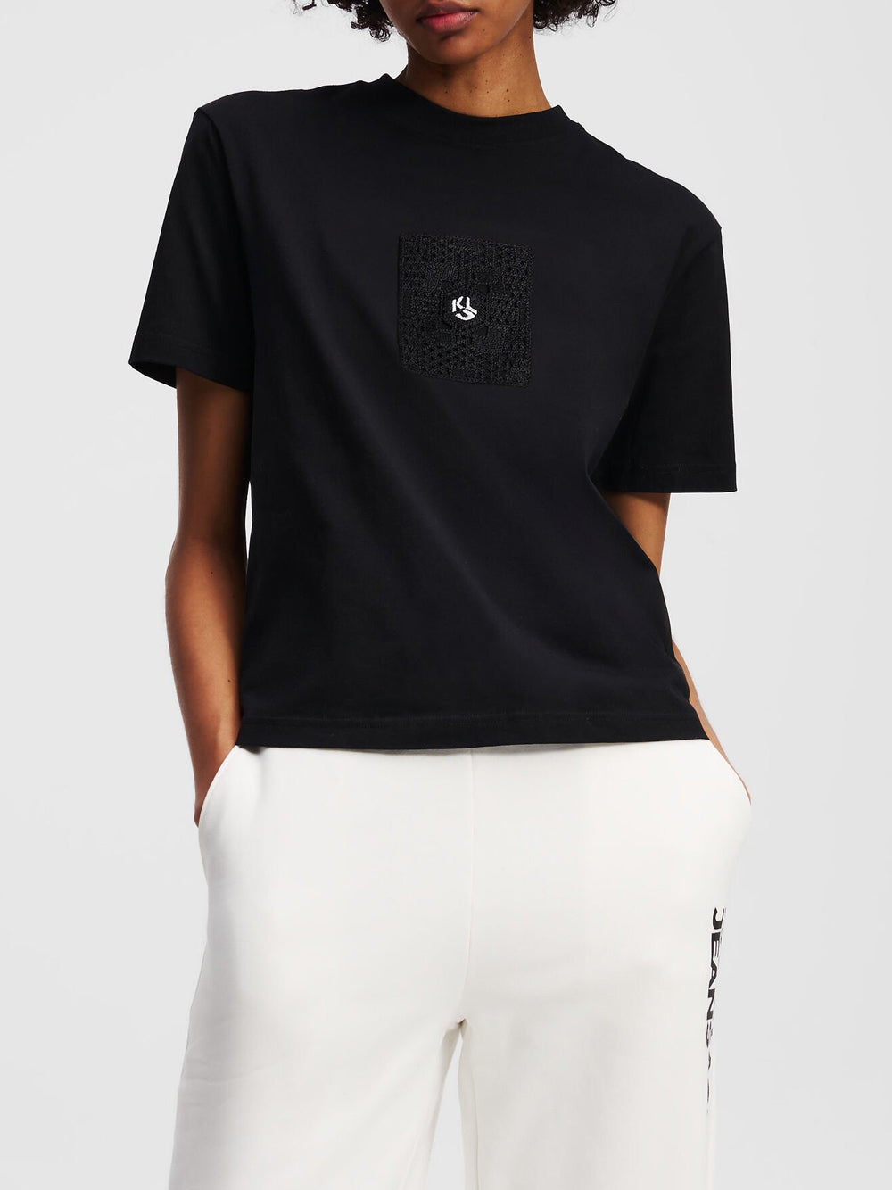 Scopri la bellezza e la semplicità della T-shirt Donna A2W17096 Black - Nero di Karl Lagerfeld. Questo capo essenziale, con il suo audace design KARL LAGERFELD JEANS Monogram, aggiunge un tocco di stile al tuo guardaroba. È realizzato in cotone organico, assicurando comfort e alta qualità, perfetto per ogni occasione casual.
