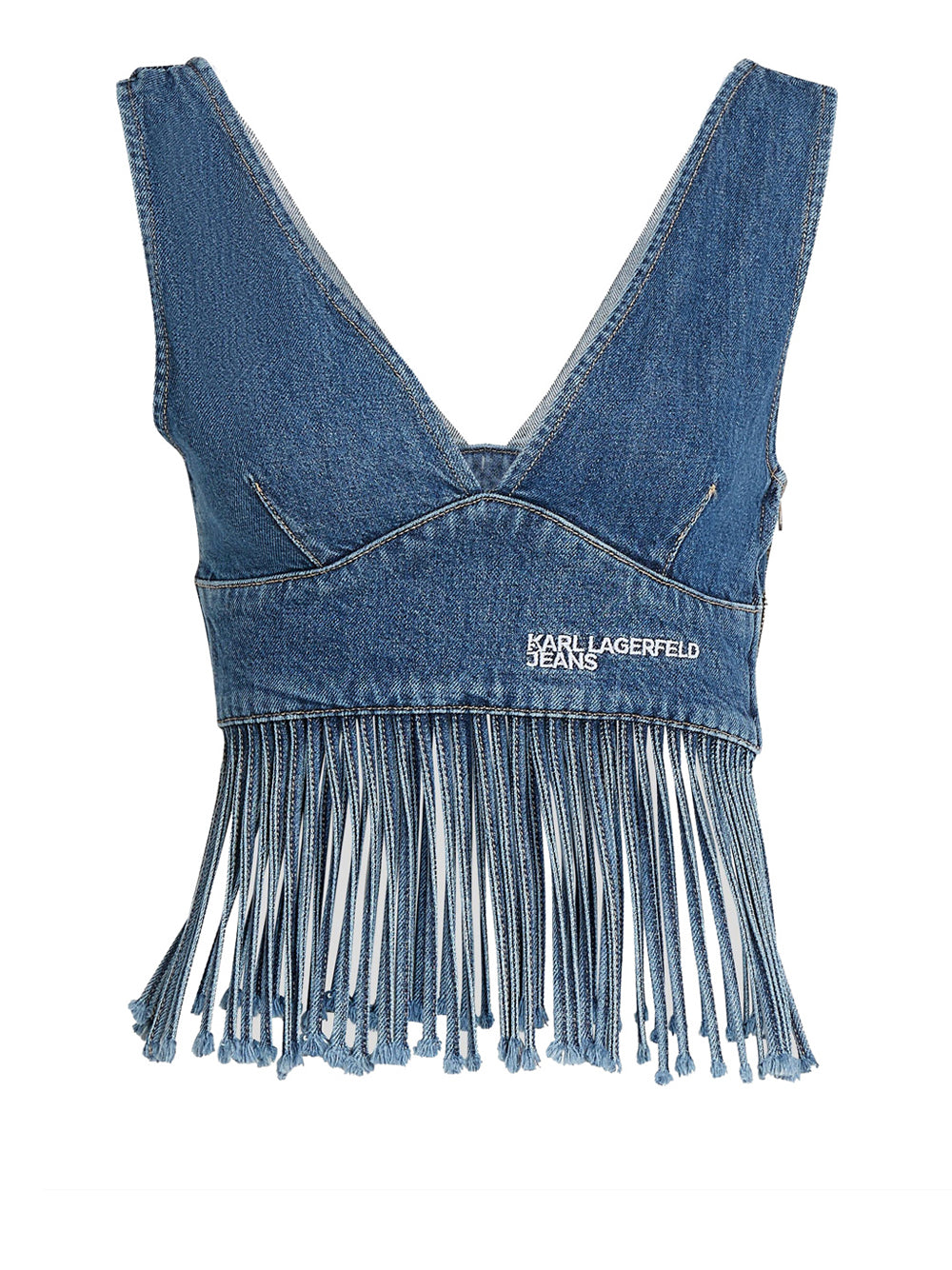 - Indossalo sotto la giacca di jeans con frange coordinata per un look dal festival
