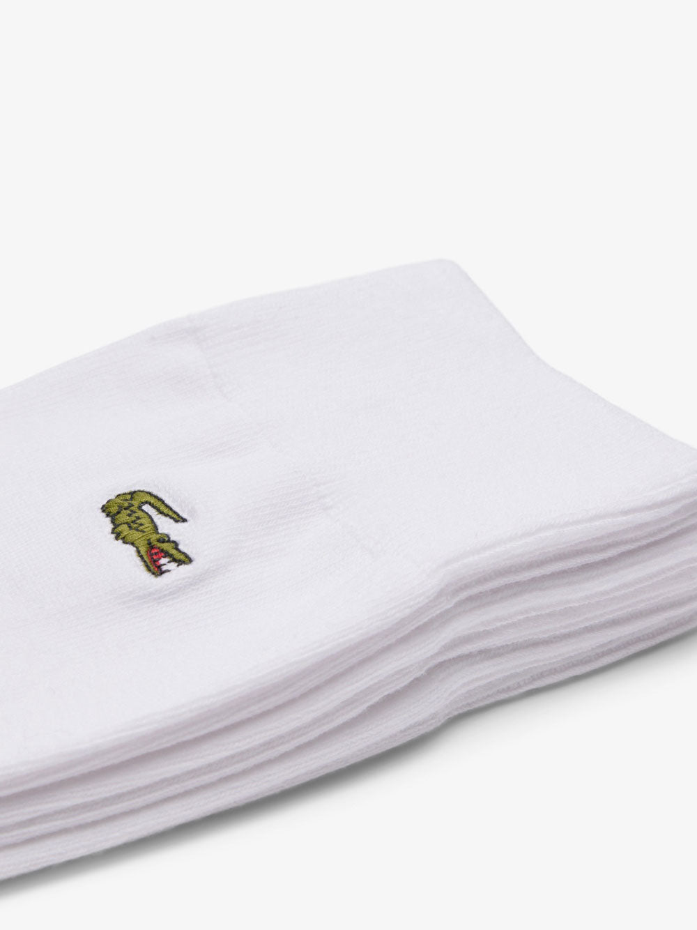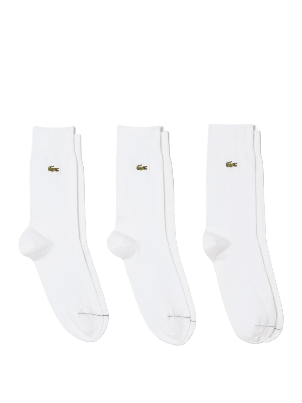 Calzini Uomo Lacoste RA8142 - Bianco, un'aggiunta raffinata al guardaroba di ogni uomo. Realizzati in jersey di cotone biologico, questi calzini alti mélange combinano comfort e stile, decorati con l'iconico coccodrillo verde a lato. Perfetti per chi desidera aggiungere un tocco elegante e distintivo al proprio abbigliamento quotidiano.