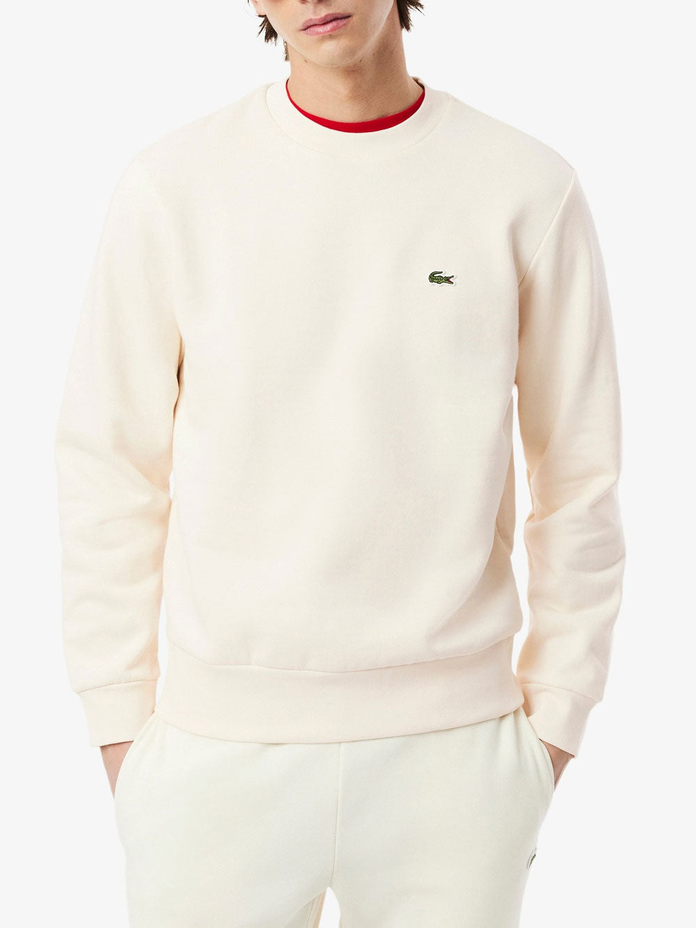 La felpa uomo SH9608 in avorio targata Lacoste combina stile e funzionalità con il suo design essenziale. Realizzata in morbido cotone organico spazzolato, sostiene un classico taglio per una comodità naturale. Completa di collo alto e l'iconico coccodrillo ricamato, è un capo che si afferma come uno dei best seller di Lacoste.