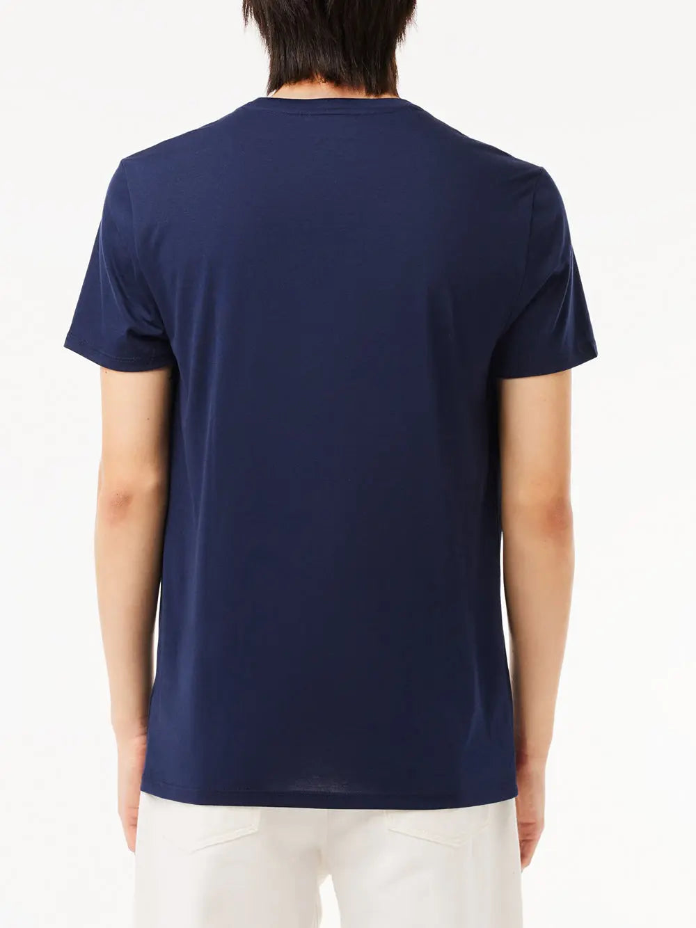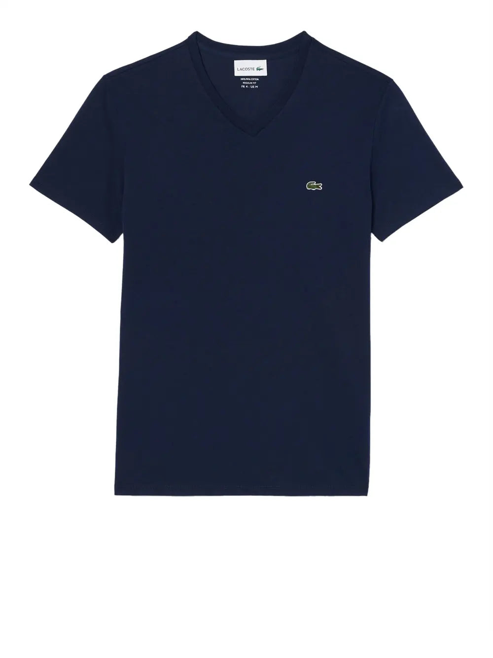 La T-shirt Uomo TH6710 di Lacoste, in un elegante blu navy, incarna la perfetta combinazione di comfort e stile. Realizzata in morbido jersey di cotone, questa t-shirt presenta un accolto scollo a V e il celebre coccodrillo verde ricamato sul petto, simbolo indiscusso di qualità e raffinatezza.