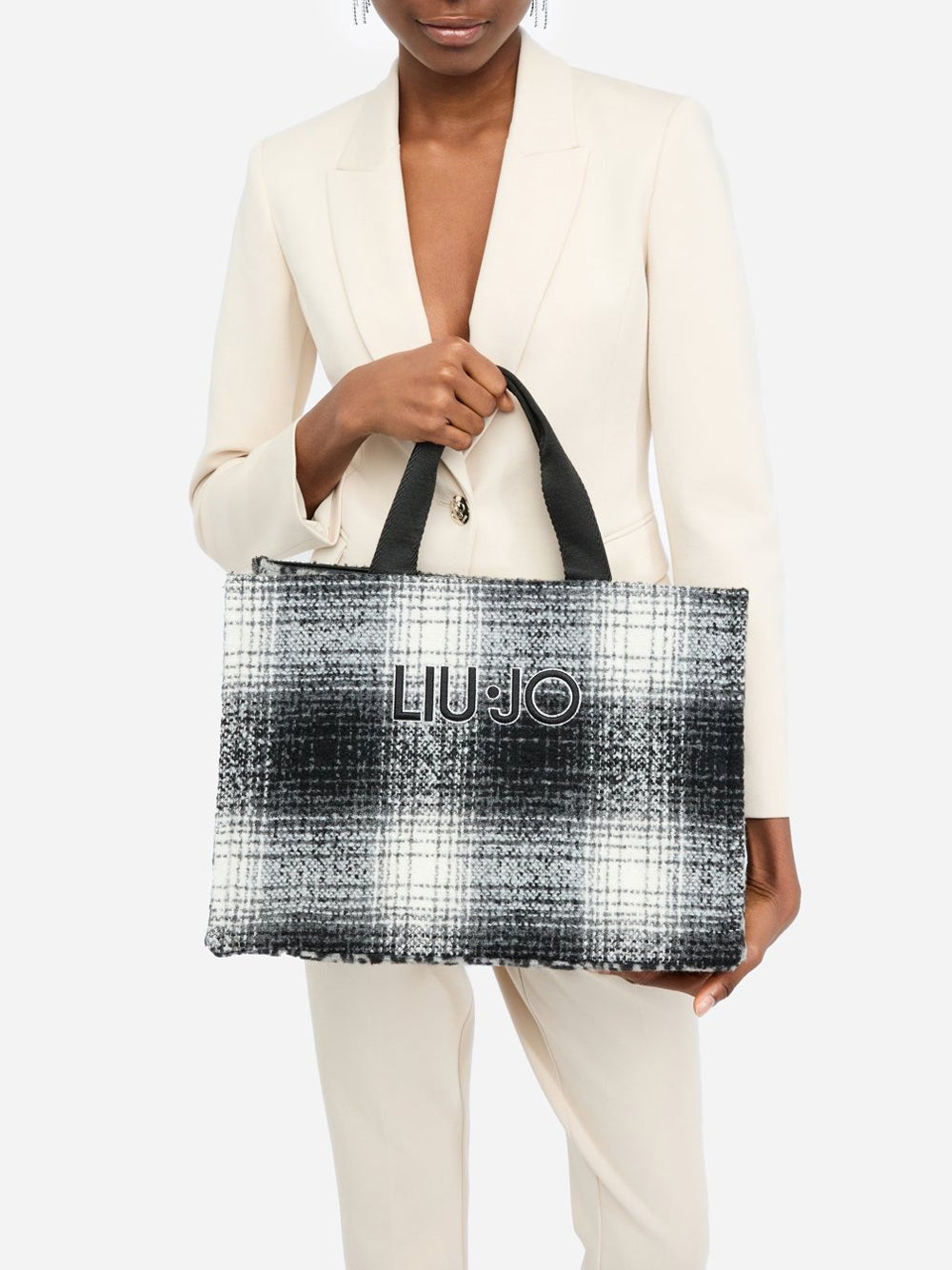 La borsa a mano Liu Jo modello Check/Black in nero è l'accessorio perfetto per ogni donna sofisticata. Con il suo design elegante e pratico, presenta un logo ricamato sul davanti e un fiocco con spilla gioiello, combinando stile e funzionalità. Perfetta per essere portata a mano o a spalla, è ideale per ogni occasione.