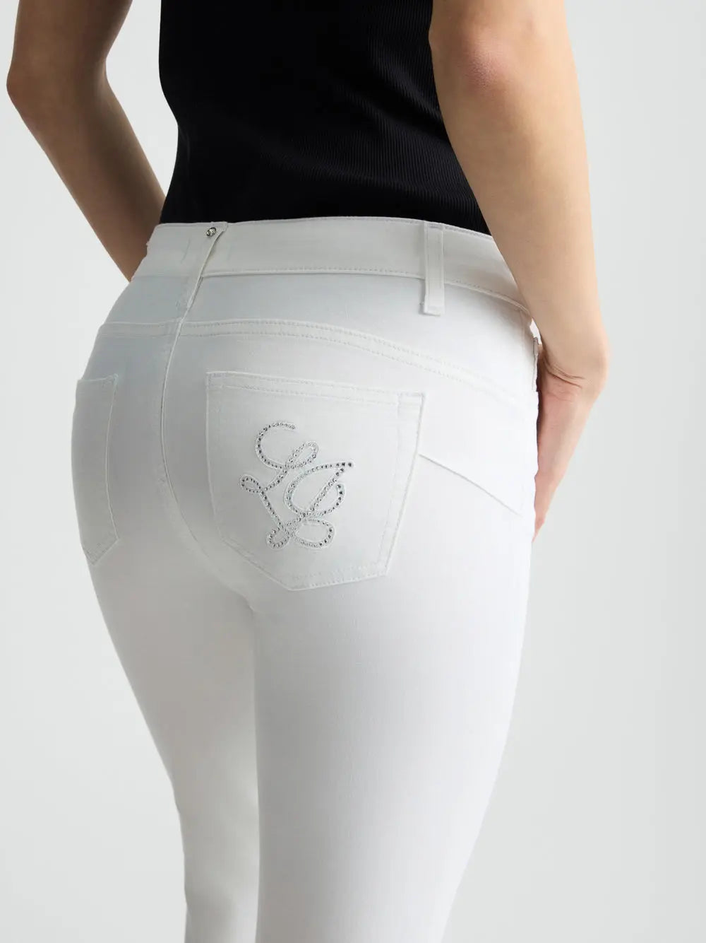 I pantaloni Capri Donna WA5417T7144 di Liu Jo si distinguono per uno stile contemporaneo e raffinato, ideale per chi desidera versatilità e comfort. Realizzati in misto cotone stretch, presentano una vestibilità bottom up che valorizza la silhouette, completata da dettagli di strass e un modello cinque tasche per un tocco di eleganza casual.
