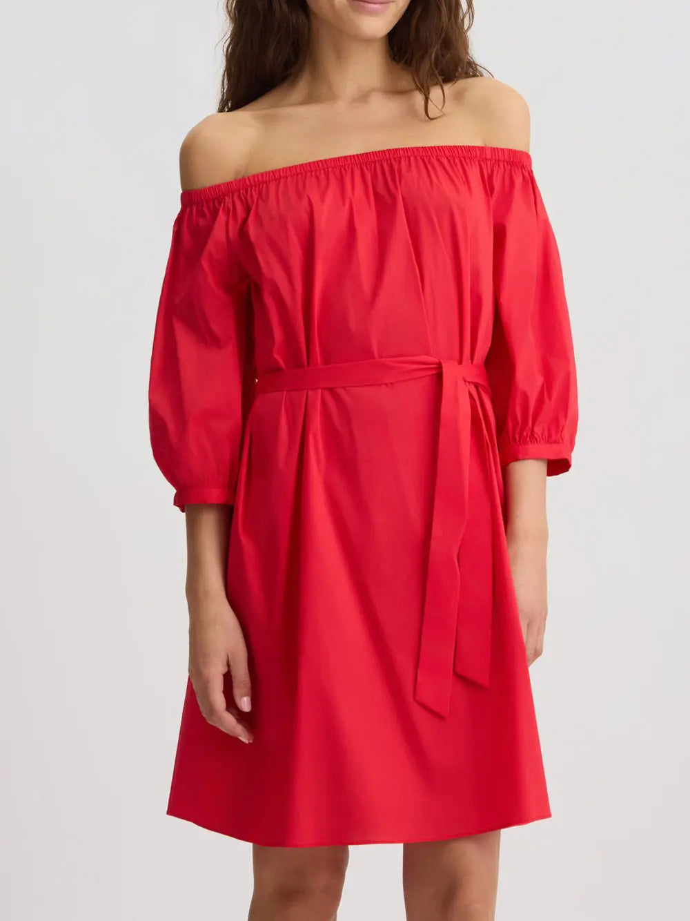 Scopri il vestito mini donna VA5177TS330 Allarme di Liu Jo, un capolavoro di stile e eleganza. Realizzato in popeline di misto cotone stretch, questo abito presenta una scollatura off the shoulder che esalta la femminilità, maniche a 3/4 e una cintura abbinata che definisce la silhouette. Ideale per chi cerca un tocco di classe senza rinunciare al comfort.
