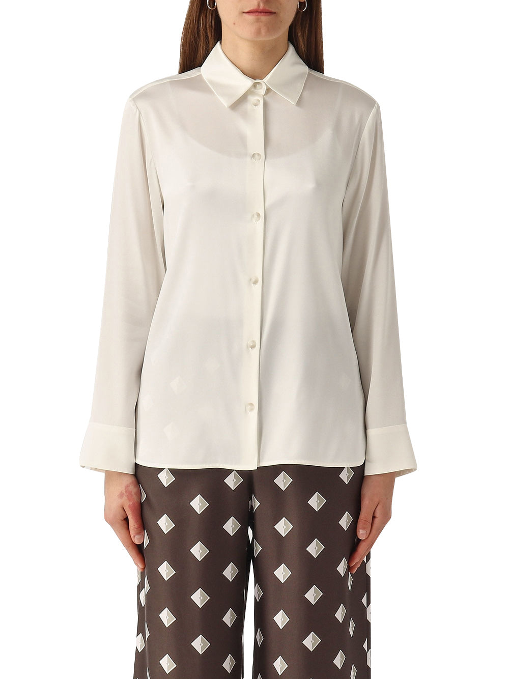 La camicia Kadiak di Max Mara è una raffinata aggiunta al guardaroba di ogni donna. Realizzata con una combinazione di seta ed elastan, questa camicia classica in bianco esalta la silhouette con la sua texture avvolgente. Perfetta per completare look eleganti, si adatta a molteplici occasioni grazie al suo design versatile.