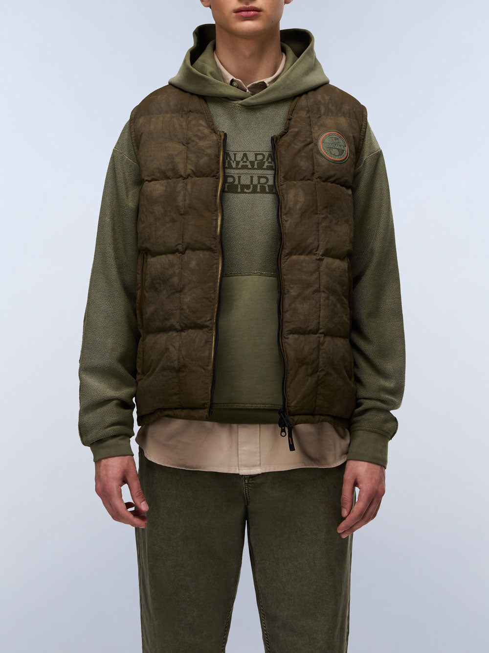 Lo smanicato Napapijri Vajolet da uomo, di colore verde, è ideale per chi cerca un capo versatile e alla moda. Realizzato con Thermo-Fibre senza piuma, offre un ottimo isolamento termico. Dotato di chiusura a tutta lunghezza e tasche laterali, presenta il Bollo Napapijri sul petto. La vestibilità oversize e loose lo rende comodo e di tendenza. Un capo iconico per un look casual e alla moda.