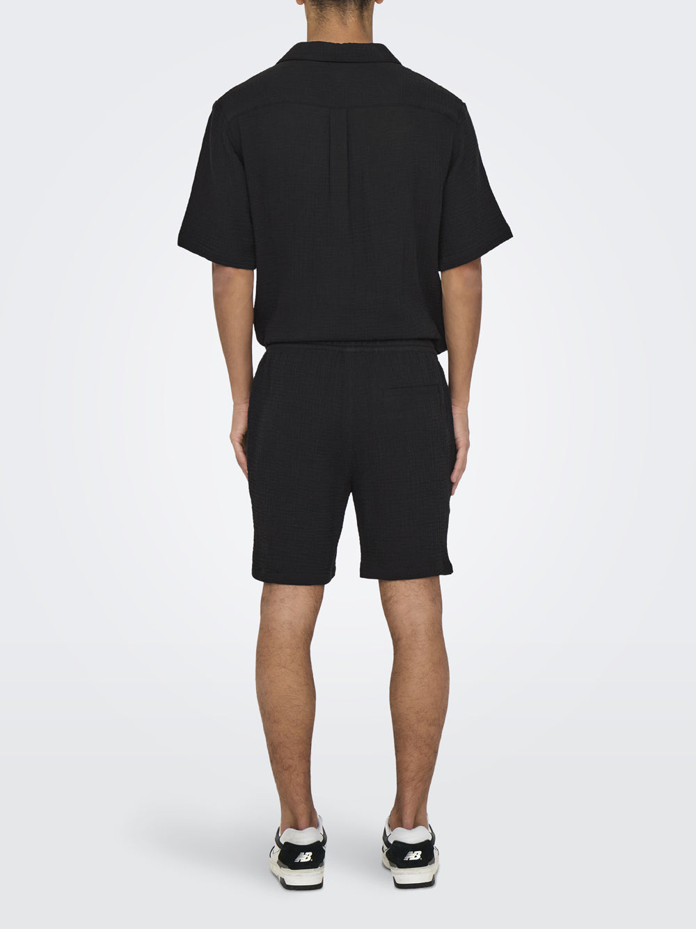 I Bermuda Casual Uomo di Only e Sons sono un'aggiunta elegante e pratica al guardaroba estivo. Realizzati in jet black, questi bermuda in cotone al 100% consentono un look fresco e raffinato per ogni occasione informale, dalla spiaggia alla griglia, mantenendo un comfort e uno stile impeccabili.