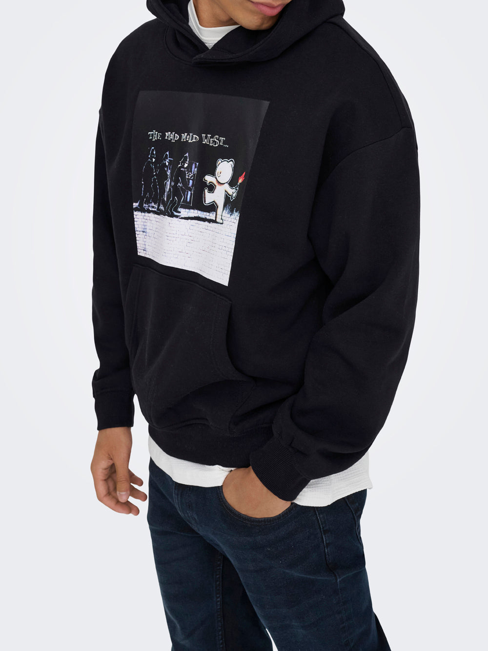 La felpa con cappuccio Only e Sons da uomo in nero è perfetta per uno stile casual e alla moda. Realizzata in morbido tessuto, questa felpa offre un comfort eccezionale. Il taglio regular fit assicura un look moderno e casual. Ideale per l'uomo alla ricerca di un capo versatile per il tempo libero.