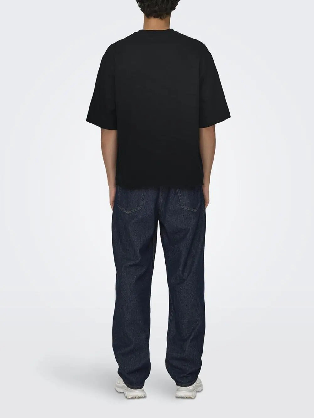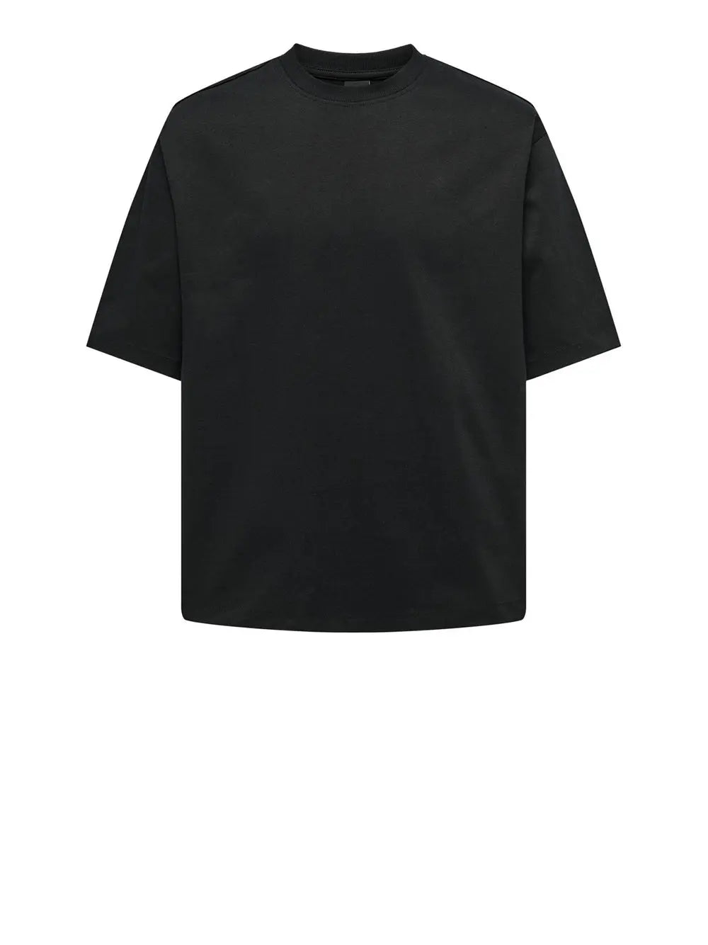 La T-shirt Uomo 22027787 Black - Nero di Only e Sons è un capo essenziale per chi cerca comfort e stile. Realizzata in cotone 100% naturale, offre una sensazione morbida e traspirante. Perfetta per l'uso quotidiano, questa T-shirt oversize con maniche corte e collo girocollo è l'opzione ideale per chi ama combinare semplicità e praticità.