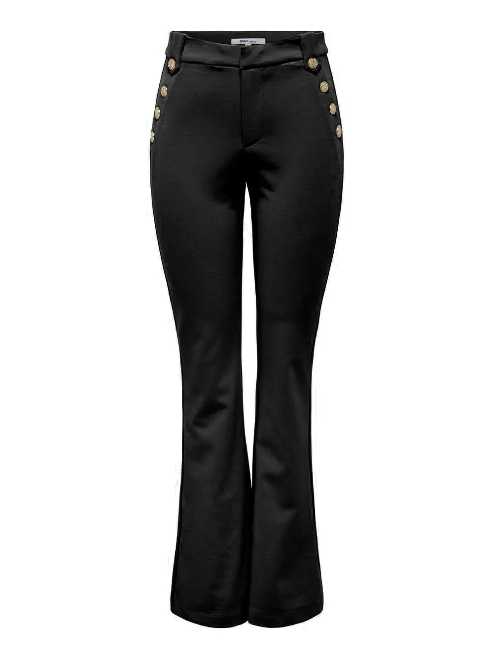 Il pantalone zampa Peach But Flared Donna di Only è perfetto per chi cerca un capo dal carattere deciso e moderno. Questo pantalone si distingue per il suo design flared che dona un tocco di eleganza a qualsiasi outfit e il suo colore nero versatile permette una combinazione perfetta con vari stili.
