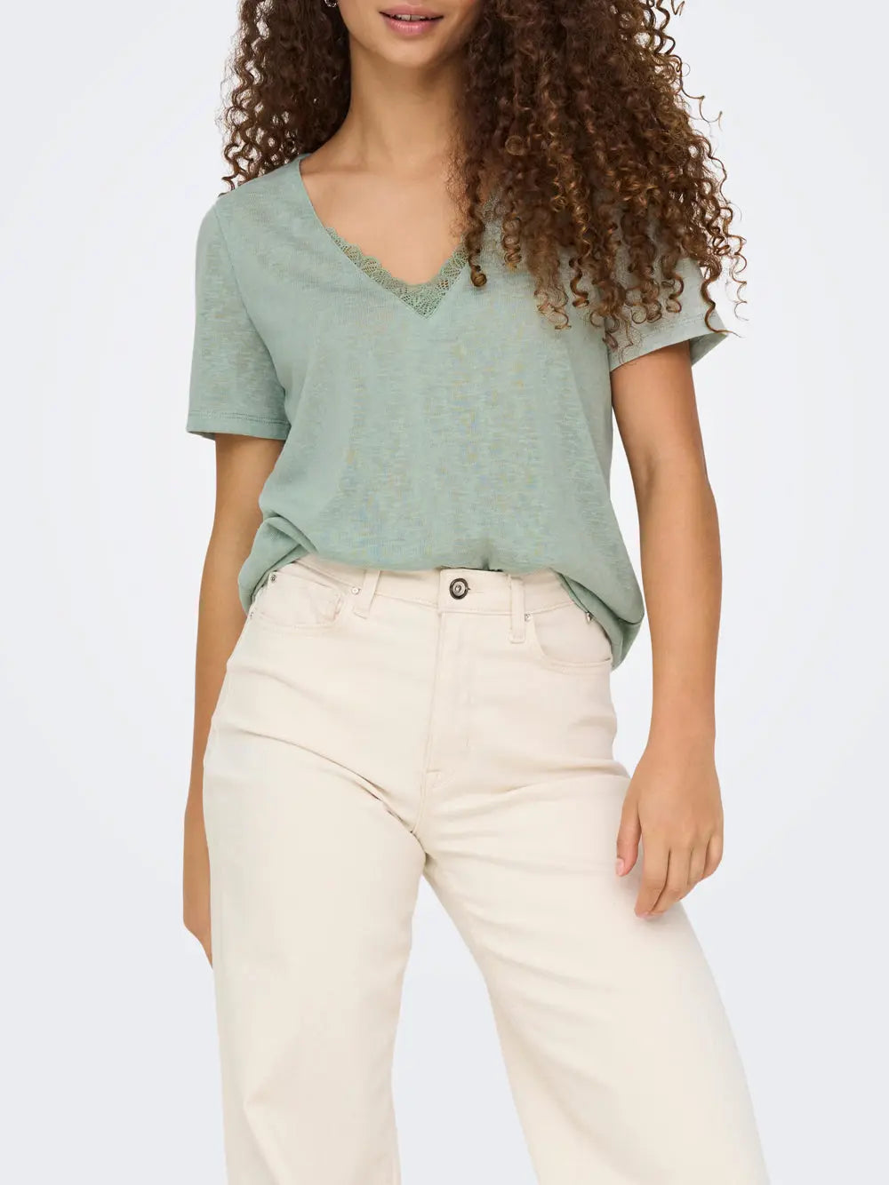 La T-shirt Zola Donna Aqua Gray Silver Charm di Only è perfetta per le donne che amano combinare comfort e stile. Con il suo design femminile e il tocco di eleganza dato dal colore verde brillante, questa t-shirt a manica corta e scollo a V rappresenta un elemento essenziale nel guardaroba di ogni donna moderna.