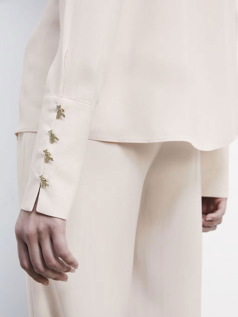 La Camicia Casual Donna "Peach Dust - Avorio" di Patrizia Pepe è un capo fluido realizzato in crêpe di viscosa, perfetto per ogni occasione. Il design essenziale e versatile si adatta sia ai look quotidiani che alle mise più eleganti, con dettagli distintivi come il polso alto e i bottoni con logo Fly.