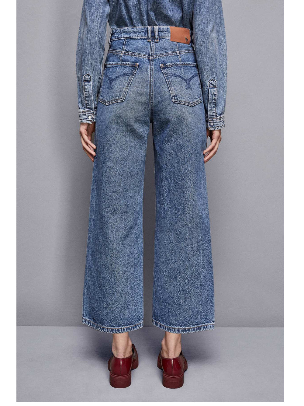 Jeans Wide Cropped Donna 8P0691D1WZB Blue Wash - Denim