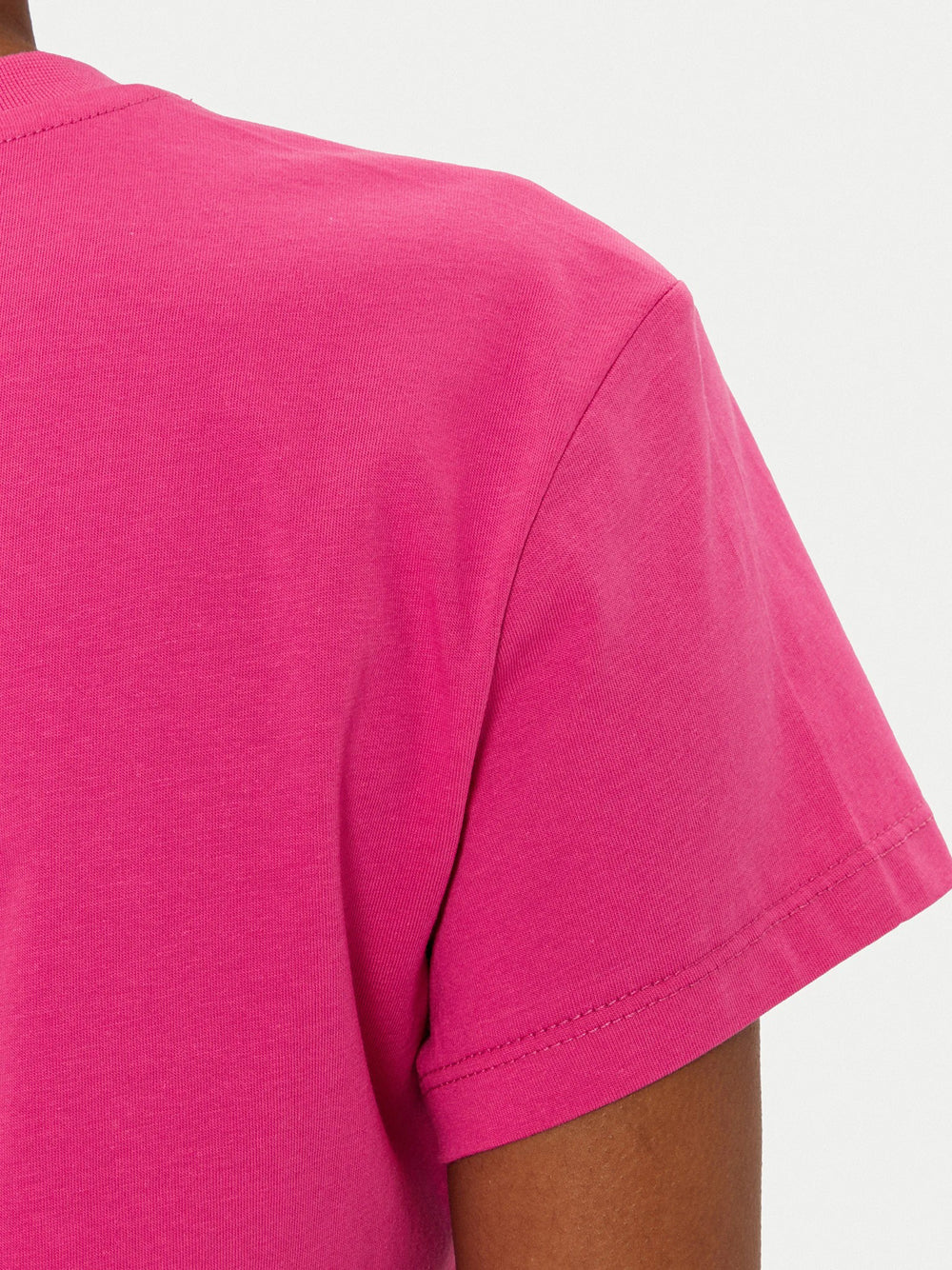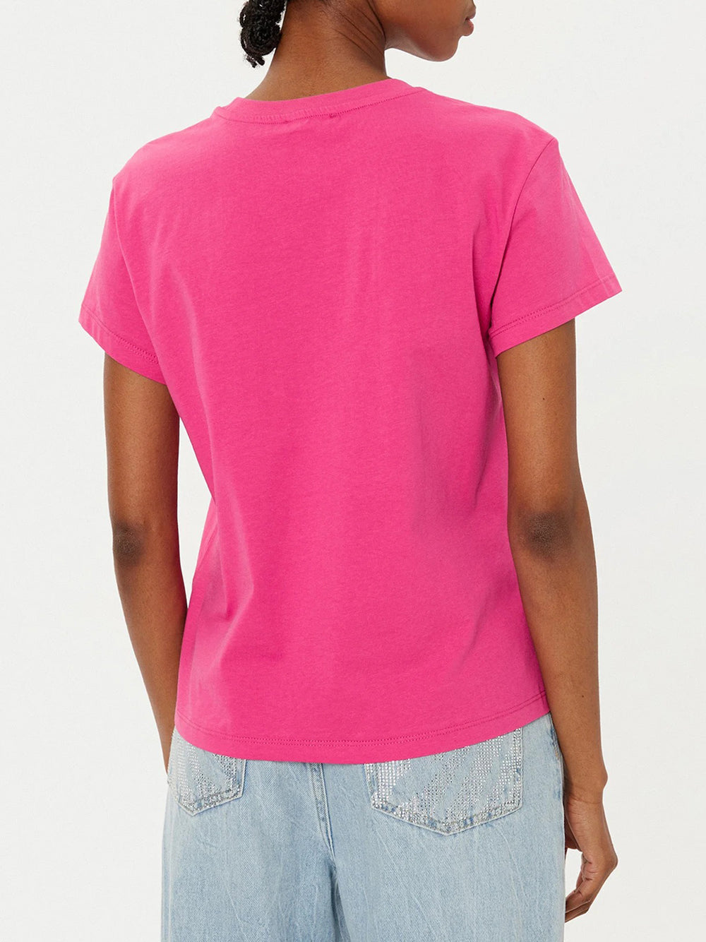 T-shirt Donna 8M1543J111 - Fuxia di Patrizia Pepe, espressione di stile vivace e giovanile. Realizzata in cotone organico al 100%, garantisce comfort e traspirabilità. L'elegante ricamo del logo in colore contrastante dona un tocco distintivo, rendendola perfetta per chi ama un look dinamico e moderno.