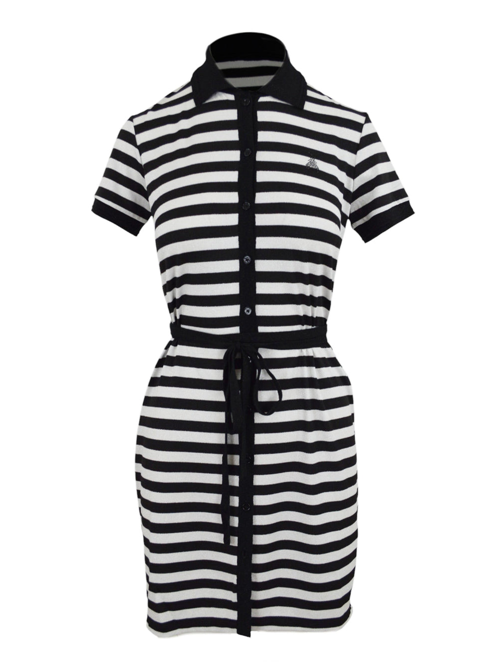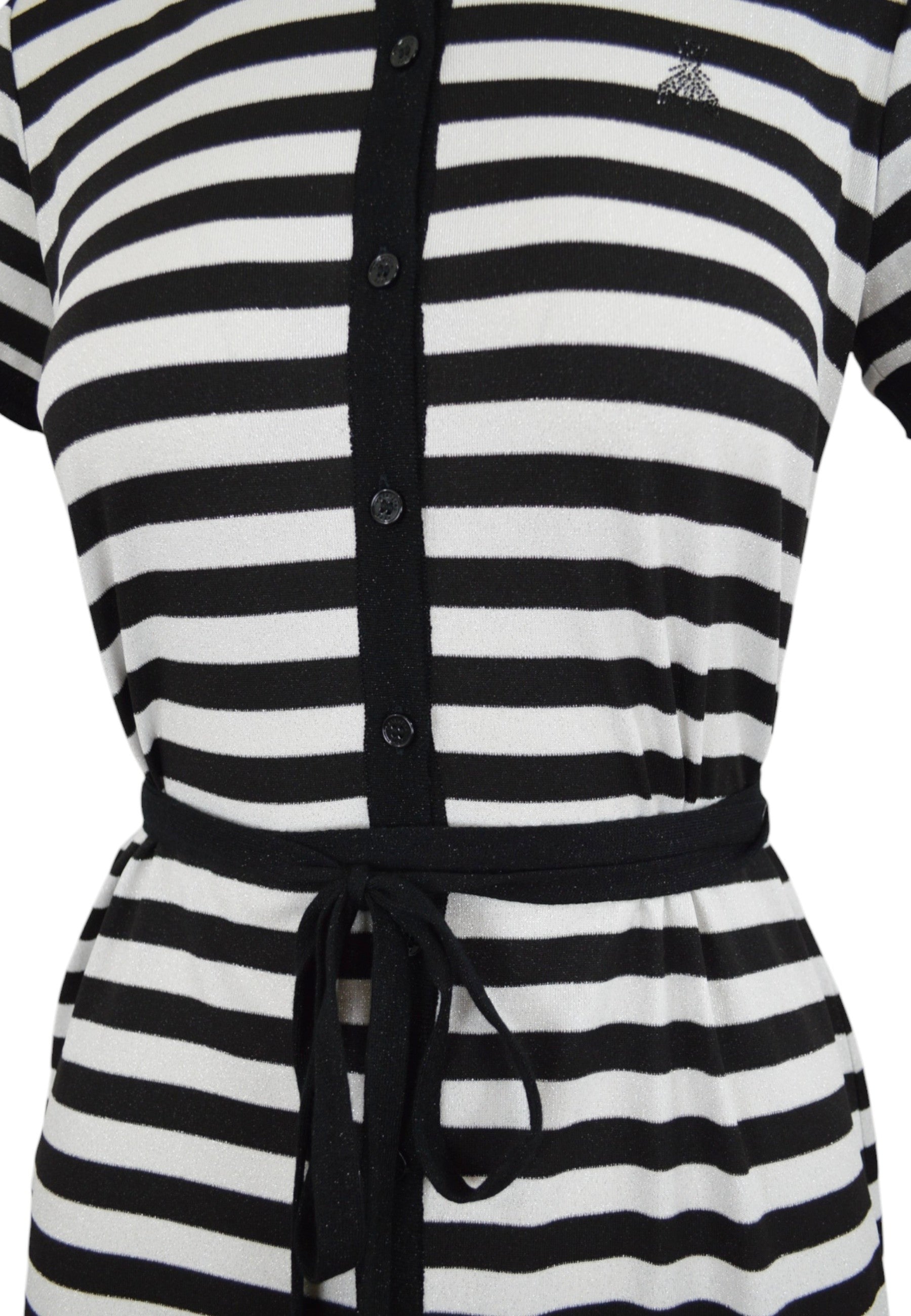 Il Vestito Mini Donna 8A1466K128A di Patrizia Pepe è un capo iconico che unisce eleganza e comfort. Realizzato nei toni del bianco e nero con dettagli in lurex, è caratterizzato da una vestibilità slim che esalta la silhouette femminile. La lavorazione in maglia elasticizzata, il chemisier con maniche corte e il cinturino in tessuto completano il design.
