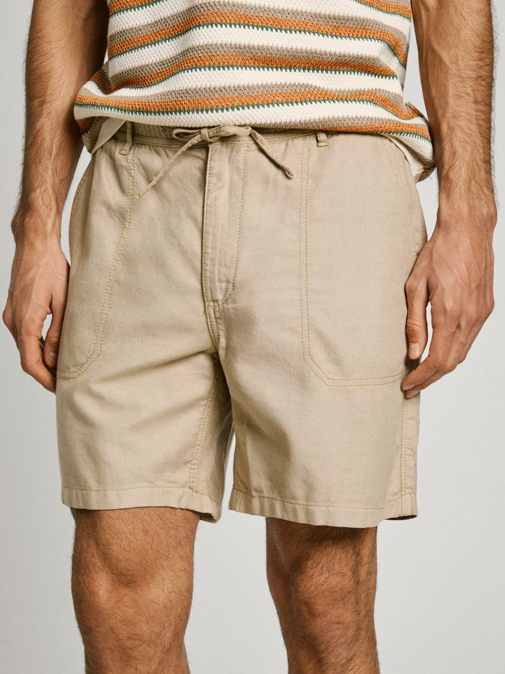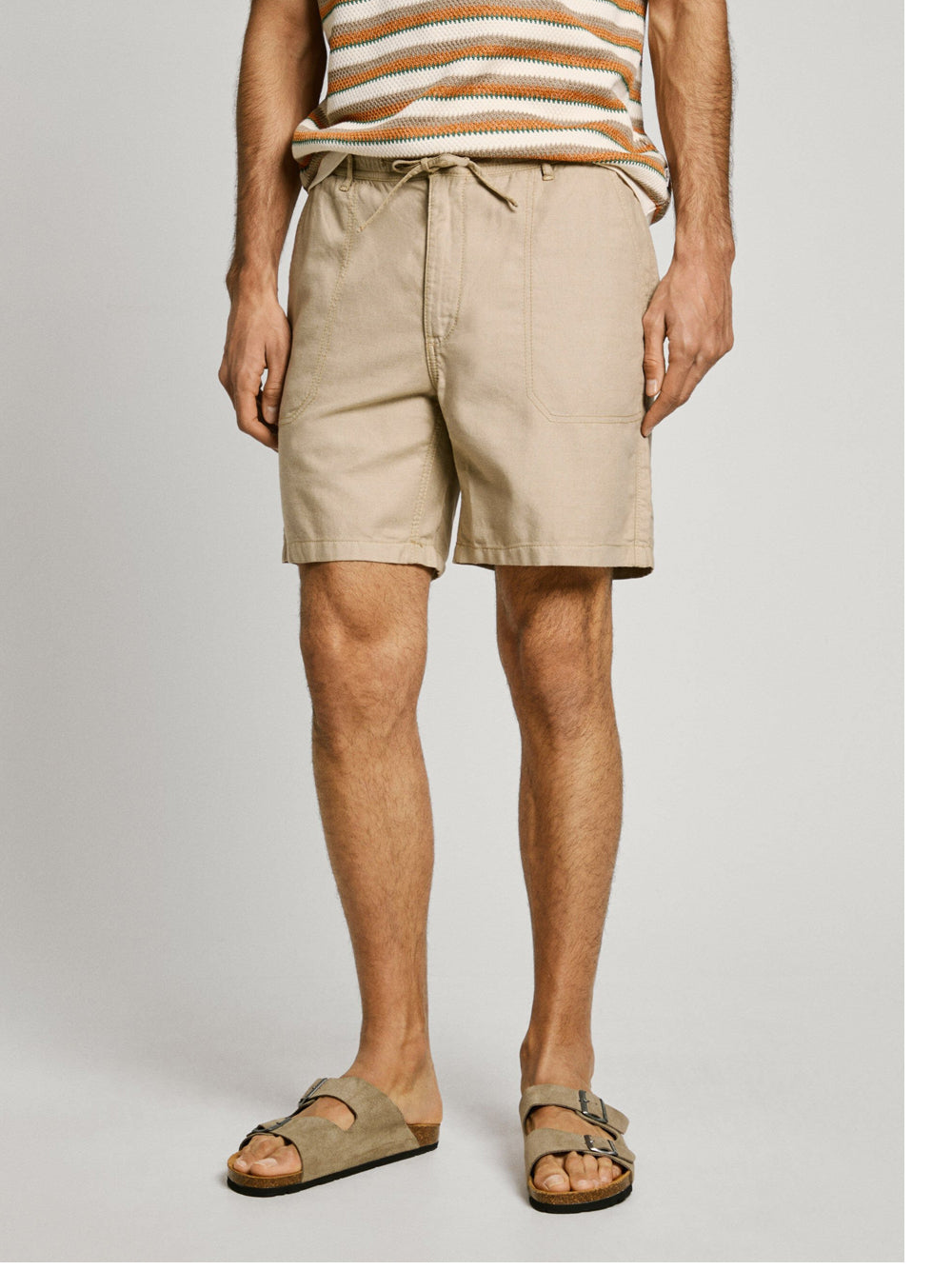 I Bermuda Casual Uomo PM801178 di Pepe Jeans in color beige sono perfetti per chi cerca comfort e stile in un unico capo. Realizzati con cotone sostenibile al 100% e lino, questi bermuda offrono un fit relaxed e sono ideali per le giornate estive più calde, abbinando praticità e un tocco di eleganza informale al tuo guardaroba.