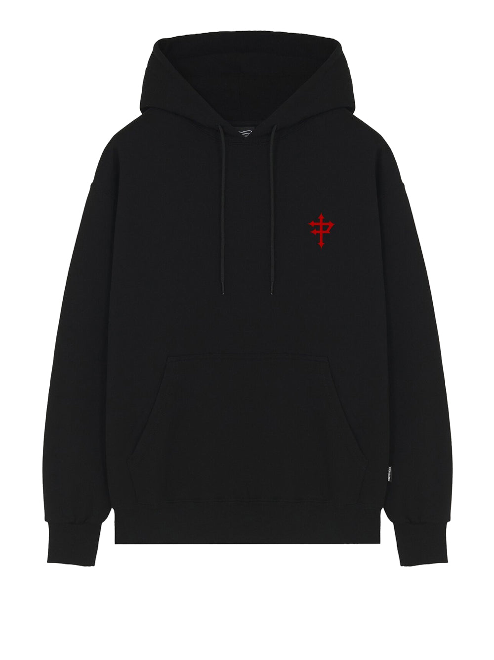 Scopri la Felpa Cappuccio Uomo Propaganda, un capo d'abbigliamento versatile e di tendenza. Questa felpa con cappuccio nera, dal design giovane e dinamico, è caratterizzata da un ricamo sulla fronte e una stampa serigrafica sul retro, perfetta per essere indossata ogni giorno senza rinunciare a stile e comfort.