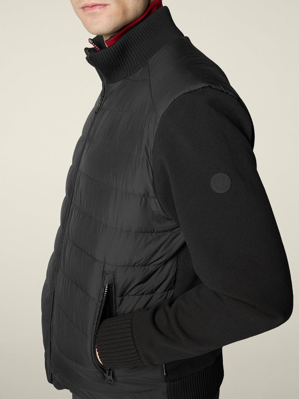 - Design ibrido con pannello trapuntato e maglia compatta sul retro e maniche
