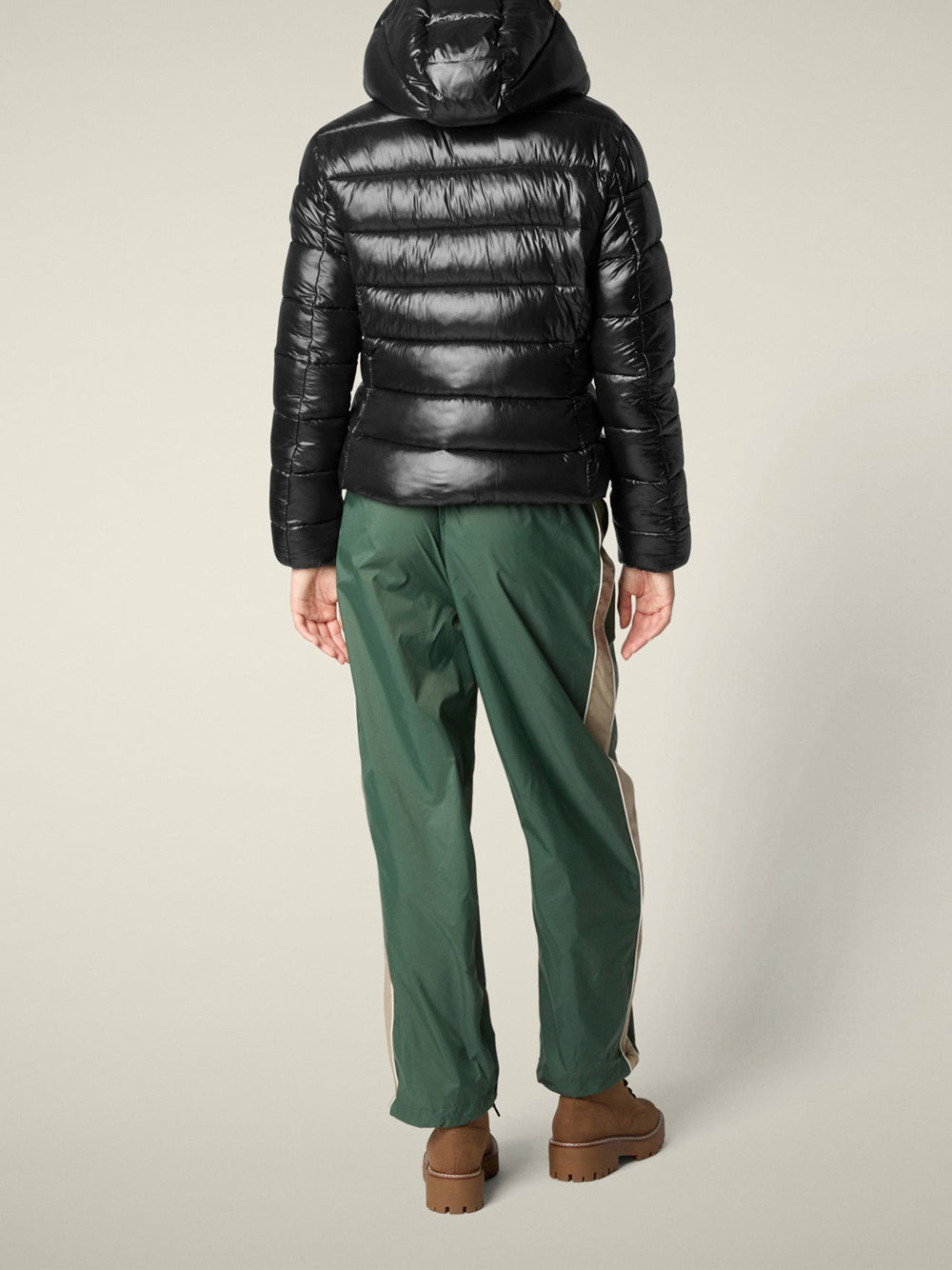 Il piumino Cosmary di Save The Duck è progettato per le donne che desiderano un comfort senza rinunciare allo stile. Realizzato con una finitura laqué originale e imbottito in Recycled Plumtech®, presenta un design slim fit che esalta la silhouette. Completano il look il cappuccio rimovibile e dettagli distintivi come il tirazip personalizzato e il logo tondo sulla manica.