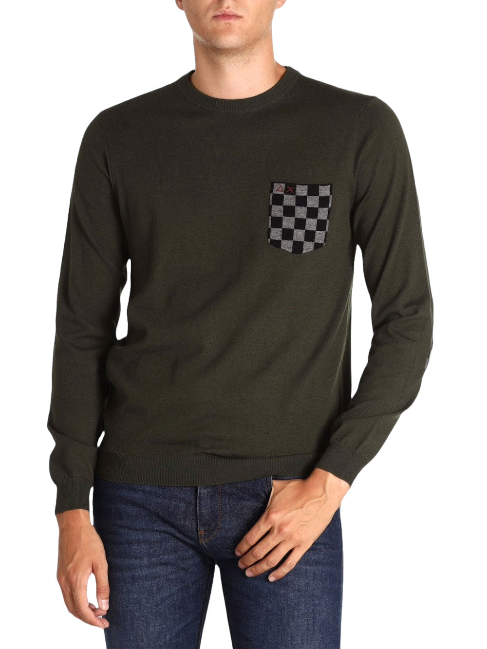 Pullover Elbow & Pocket Jacquard Uomo K43114 Militare Scuro - Verde