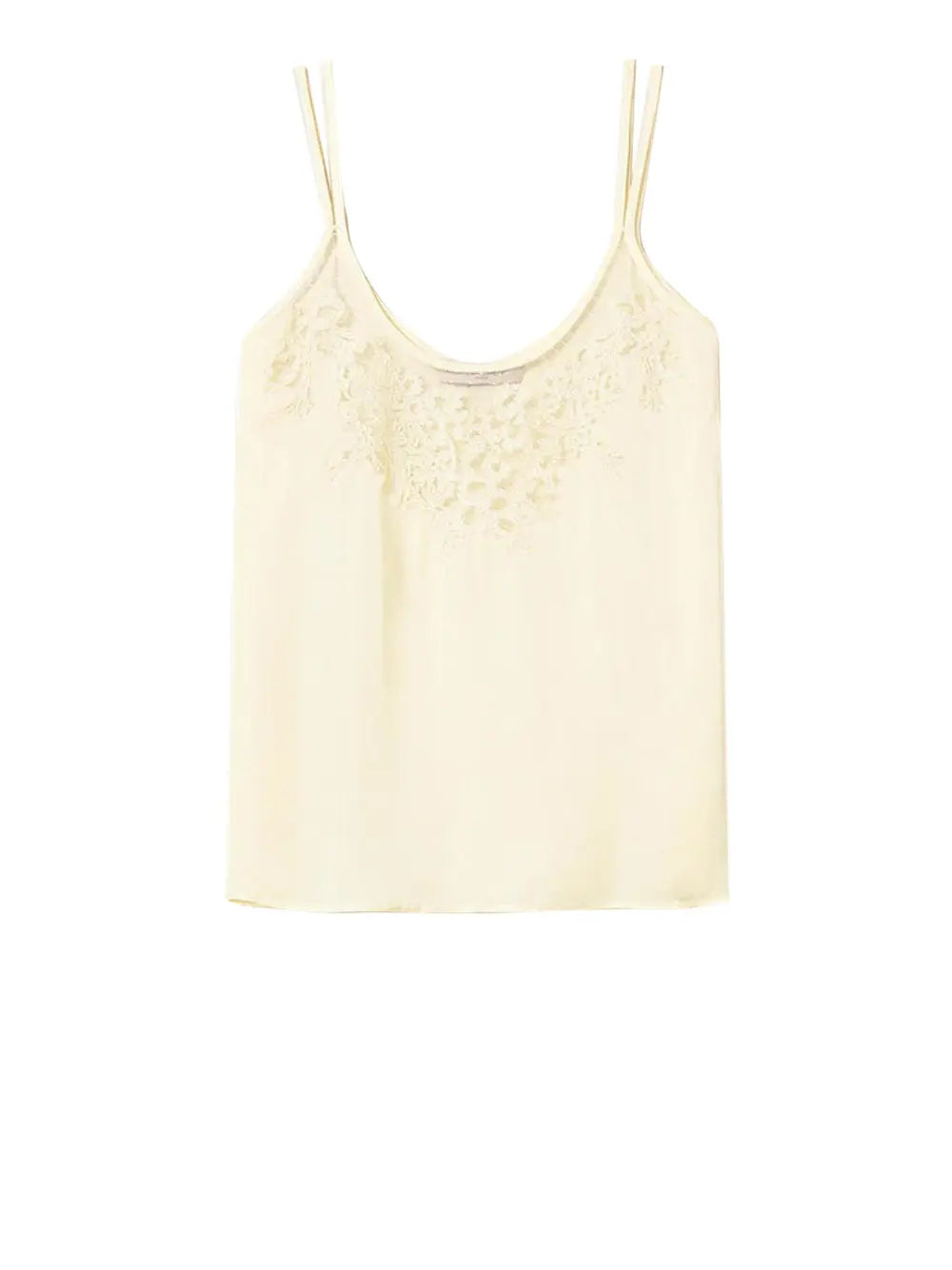 - Top in raso di viscosa con ricamo piazzato sullo scollo