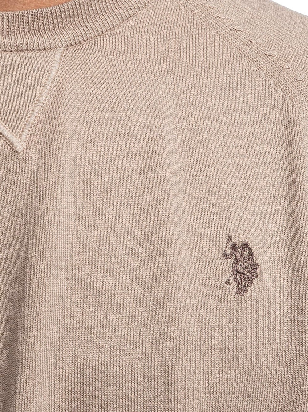 Il pullover U.S. Polo Assn. beige è l'ideale per l'uomo che cerca un capo comodo con un tocco di classe. Realizzato in 100% cotone, presenta un collo raglan giro e il caratteristico ricamo del logo Double Horsemen lato cuore. Questa maglia riflette lo stile casual e sportivo del brand, perfetta per le giornate rilassate.