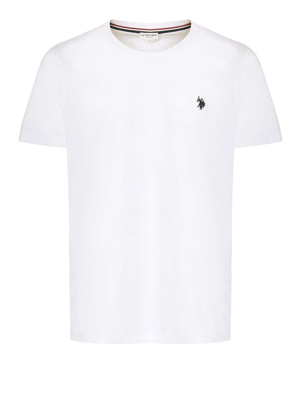 Scopri la T-shirt Uomo di U.S. Polo Assn., un capo essenziale per ogni guardaroba maschile. Realizzata in puro cotone, questa T-shirt bianca unisce comfort e stile grazie al suo design classico e al ricercato ricamo del logo Double Horseman posizionato lato cuore. Perfetta per l'uomo che desidera un look casual e senza tempo.