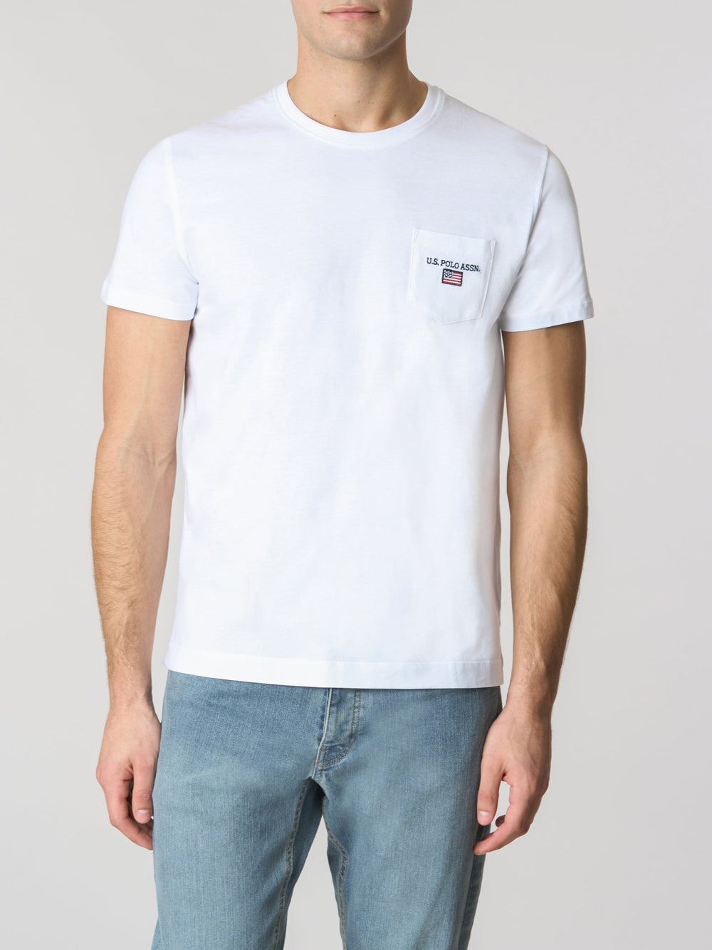 La T-shirt Uomo 1154005-0000148 - Bianco di U.S. Polo Assn. unisce eleganza e praticità. Realizzata in morbido cotone 100%, presenta un design essenziale e sportivo con un pratico taschino sul petto, impreziosito da un ricamo e una piccola bandiera americana. Un capo versatile, perfetto per un look casual.