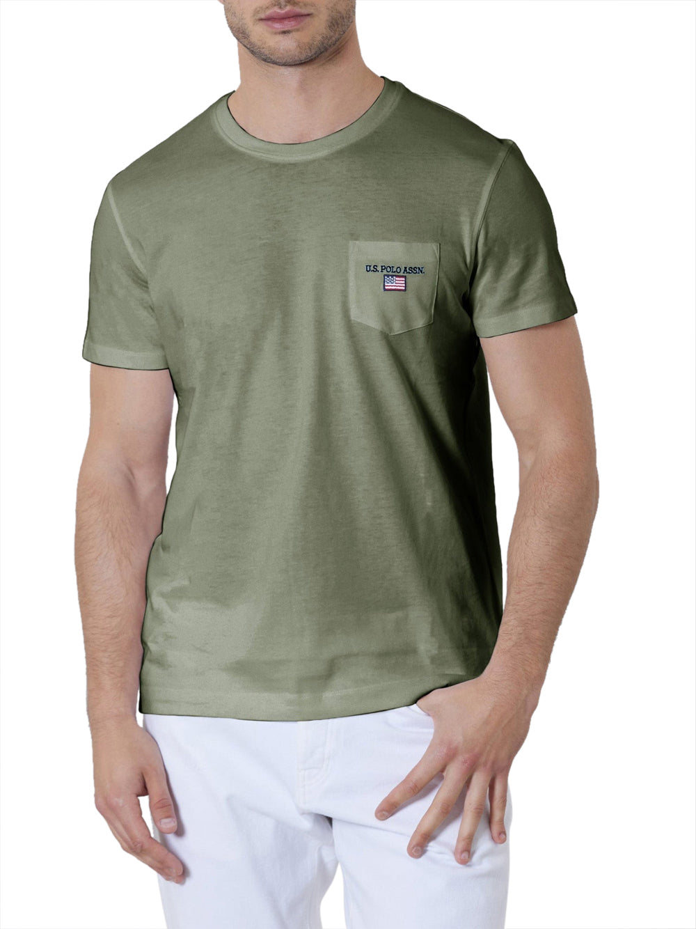 La T-shirt Uomo 1154005-0000148 di U.S. Polo Assn. è un'interpretazione essenziale ed elegante della classica T-shirt. Caratterizzata da un morbido tessuto in cotone 100%, questa maglietta verde presenta un pratico taschino frontale con ricamo iconico e una bandiera americana, esprimendo uno stile casual e distintivo per l'uomo moderno.