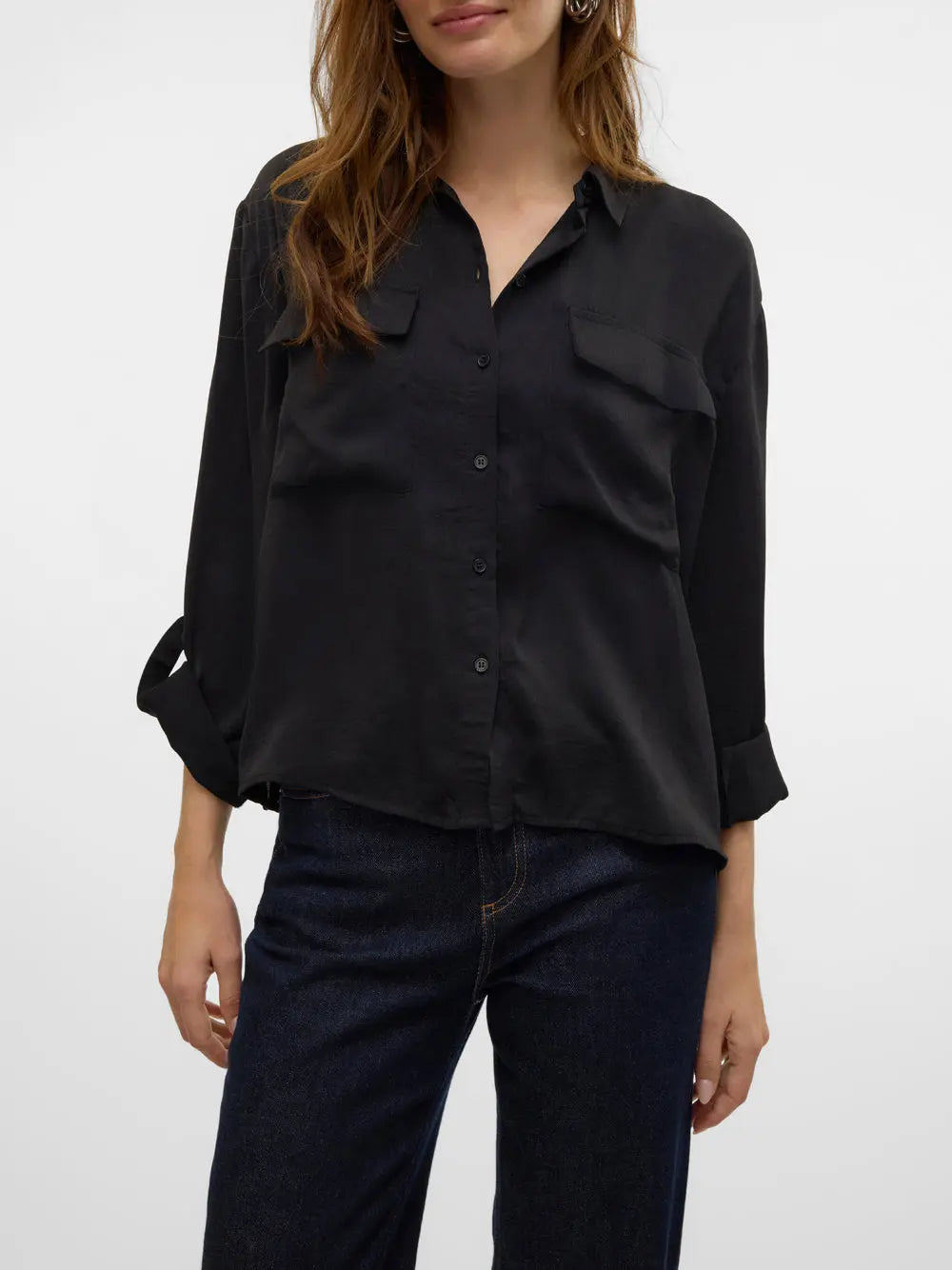 La Camicia Donna 10326880 Black - Nero di Vero Moda combina raffinatezza e comfort in un design elegante e versatile. Realizzata con materiali riciclati, non solo ti permette di esprimere il tuo stile, ma sostiene anche un approccio eco-friendly. Un capo essenziale nel guardaroba di ogni donna che ama la moda consapevole e moderna.