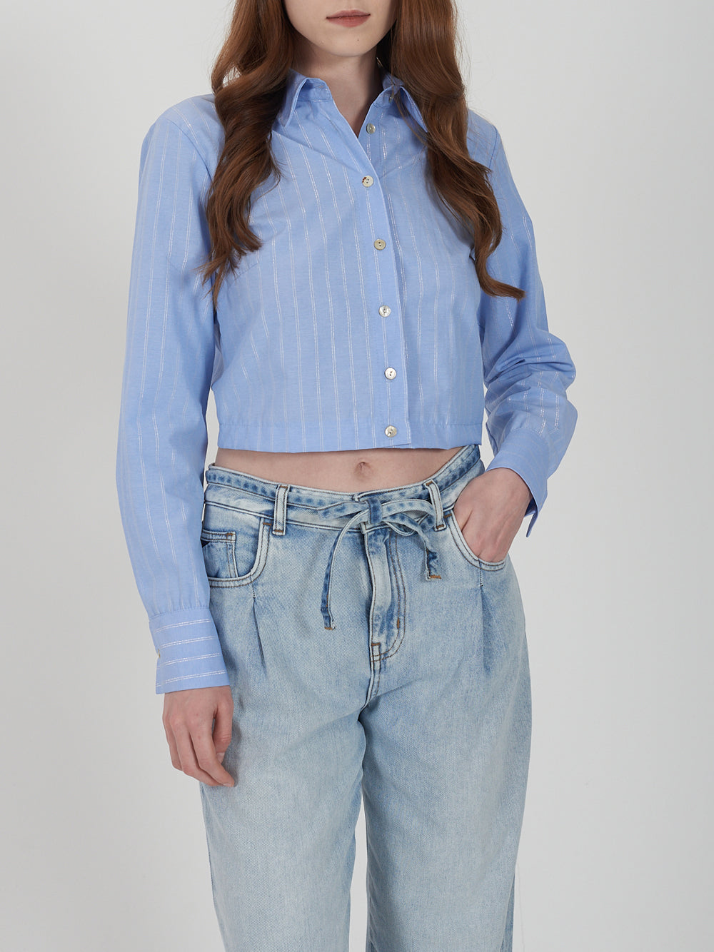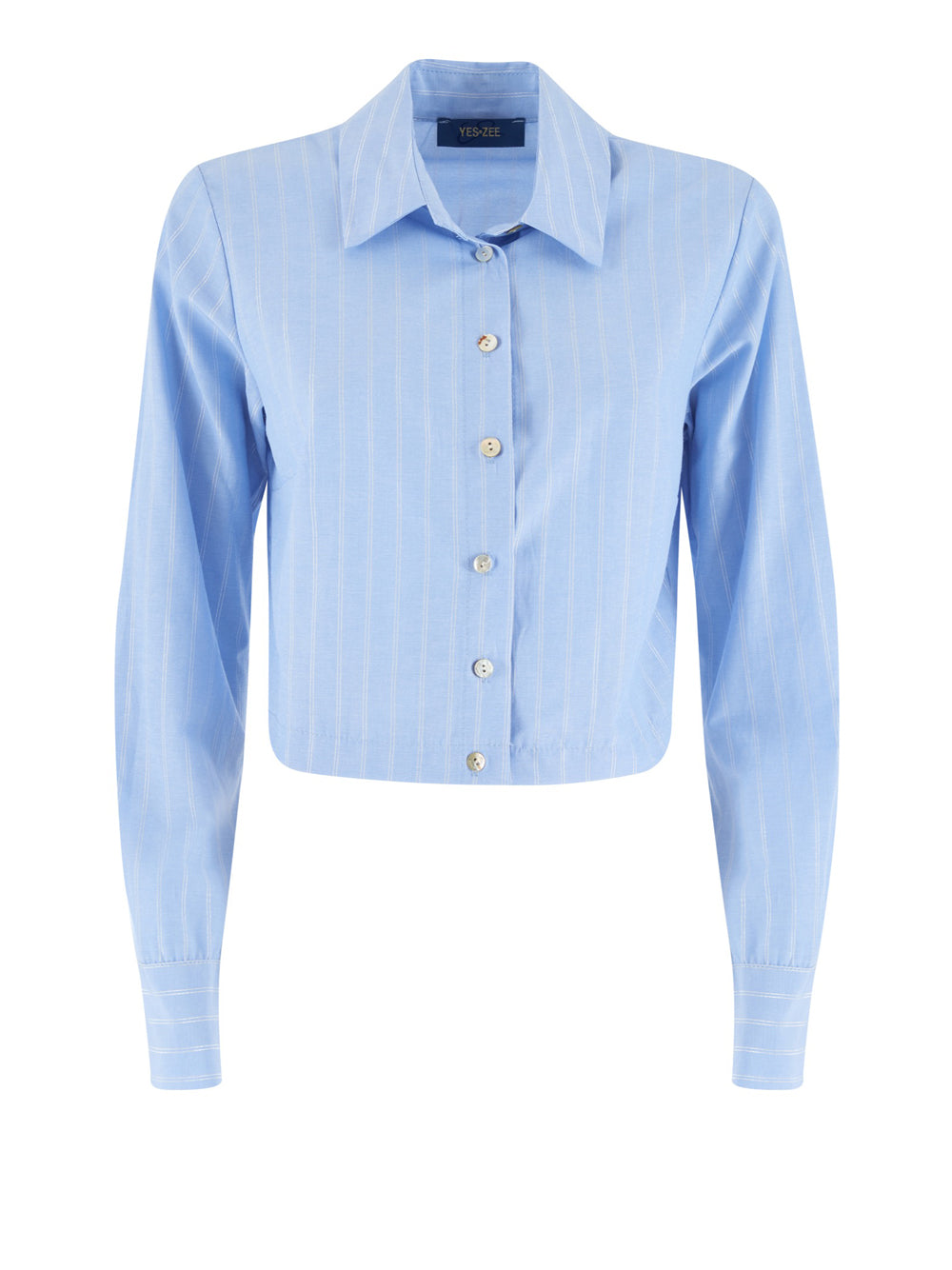 La camicia casual donna di Yes Zee è l'espressione perfetta di eleganza disinvolta. Con il suo taglio cropped a maniche lunghe, conquista con la tonalità celeste che si abbina facilmente a qualsiasi outfit. Realizzata in una pregiata miscela di cotone, poliestere, e fibra metallica, offre uno stile unico e contemporaneo per ogni guardaroba femminile.
