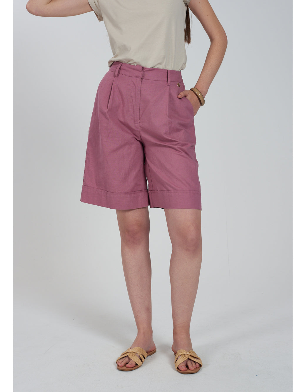 Gli Shorts Sportivi Donna P292J200 di Yes Zee sono l'aggiunta perfetta per chi cerca comfort e stile. Realizzati in un raffinato misto di cotone e lino, presentano un design a bermuda con un elegante risvolto. Il colore rosa antico scuro è perfetto per esprimere un'eleganza casual e moderna.